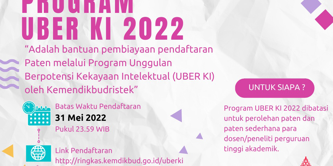 Apr202022Kegiatan Program Unggulan Berpotensi Kekayaan Intelektual (UBER KI) Tahun 2022 Category: KegiatanBy LPPM ISI SurakartaApril 20, 2022Post navigationPreviousPrevious post:Program Unggulan Berpotensi Kekayaan Intelektual (UBER KI) Tahun 2022NextNext post:Pengumuman Pendaftaran Peserta Pelatihan Penulisan Artikel Ilmiah