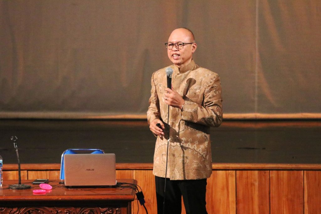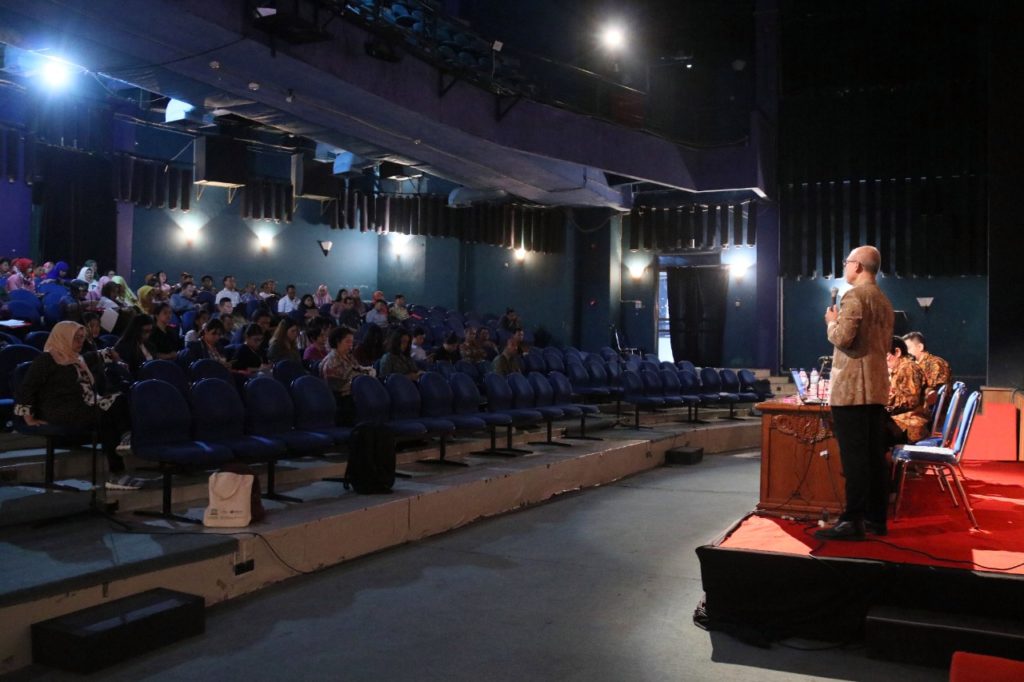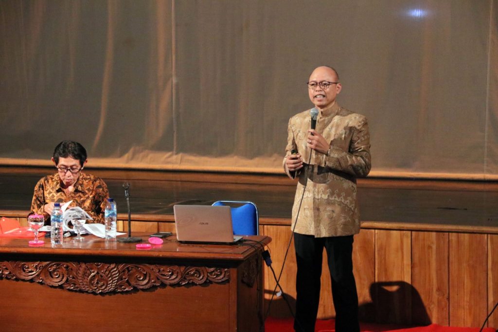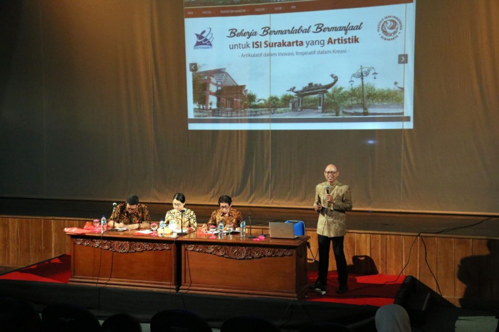 Dr.Drs. Guntur,M.Hum Rektor Institut Seni Indonesia Surakarta membuka dan memberi sambutan pada Seminar Nasional dan Pameran Hasil Penelitian & Pengabdian Masyarakat “Seni, Teknologi dan Masyarakat #4”