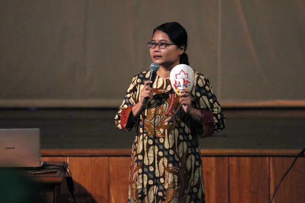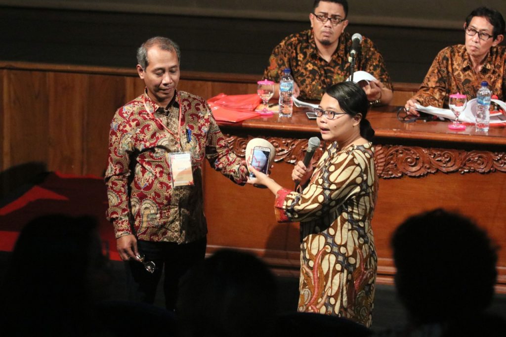 Moderator Dr Bondet Wrahatnala, S.Sos., M.Sn, Dr. Wanda Listiani, S.Sos.,M.Ds Ketua LPPM ISBI Bandung, Dr. Slamet,M.Hum Ketua LP2MP3M ISI Surakarta, Dr. Sadjuga,M.Sc Direktorat Pengelolaan Kekayaan Intelektual Kemenristek Dikti