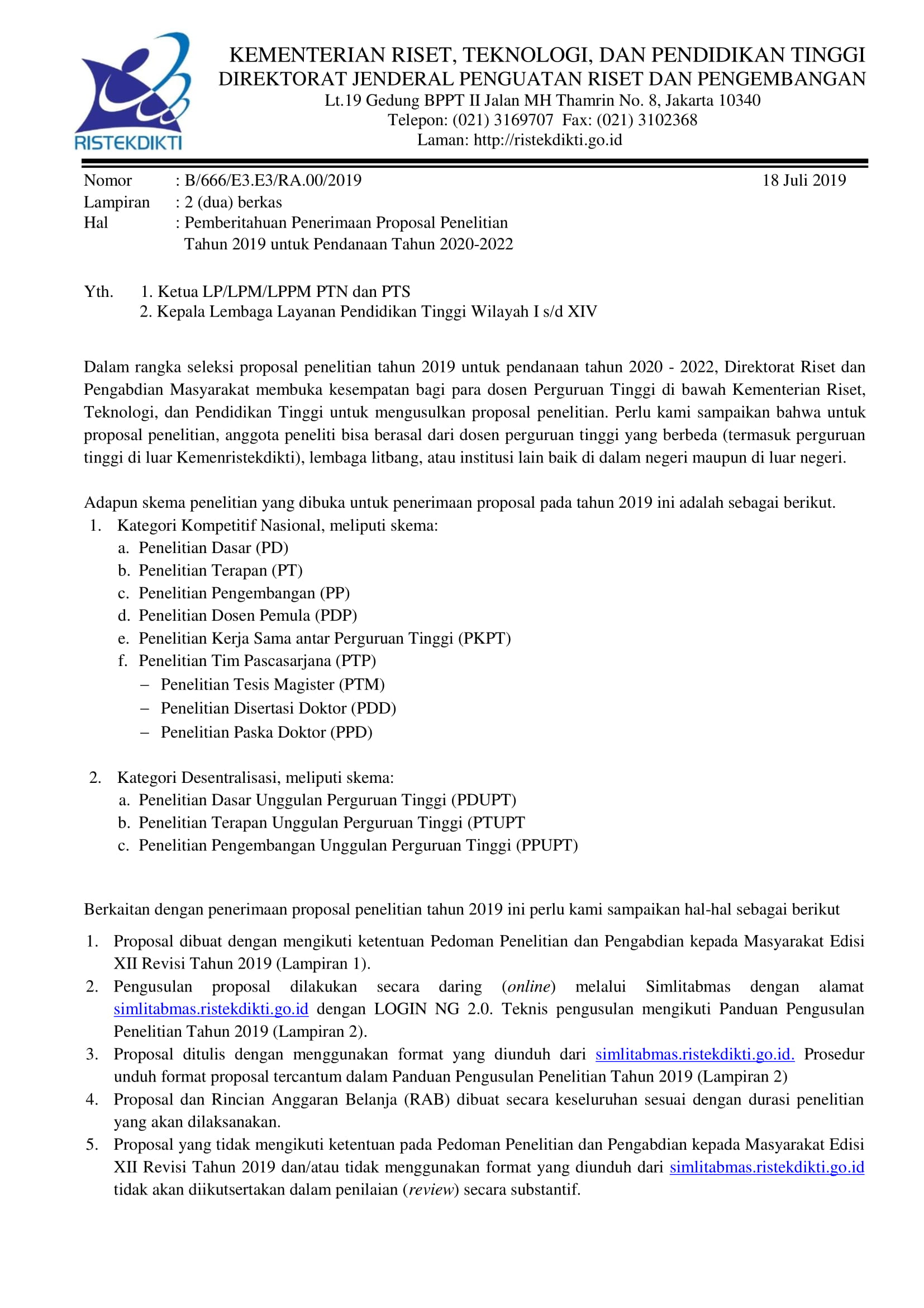 Panduan Penelitian dan Pengabdian kepada Masyarakat Edisi XII Revisi Tahun 2019 Panduan Pengusulan Proposal Penelitian Category: PengumumanBy LPPM ISI SurakartaAugust 1, 2019Post navigationPreviousPrevious post:Pengumuman Penerima Penelitian Tindakan Kelas, Buku Ajar dan Media Ajar ISI Surakarta 2019NextNext post:Insentif Buku Perguruan Tinggi Tahun 2019 Gelombang Kedua