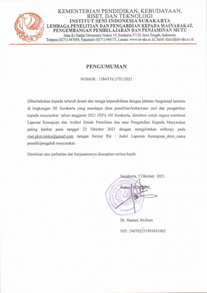 Category: PengumumanBy LPPM ISI SurakartaOctober 5, 2021Post navigationPreviousPrevious post:Bimtek Daring ” STRATEGI PENULISAN PROPOSAL PENELITIAN MENUJU SUKSES HIBAH DRPM 2022 “NextNext post:Pengumuman Penerimaan Proposal Penelitian Gel II DIPA ISI Ska 2021