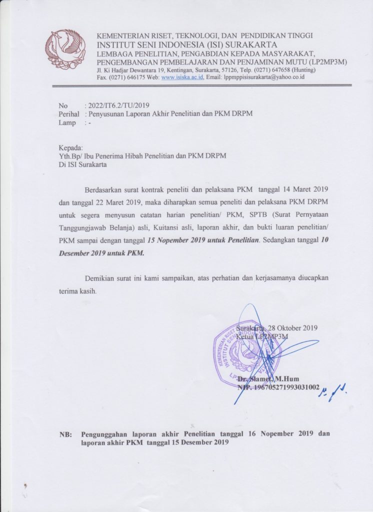 Category: PengumumanBy LPPM ISI SurakartaOctober 28, 2019