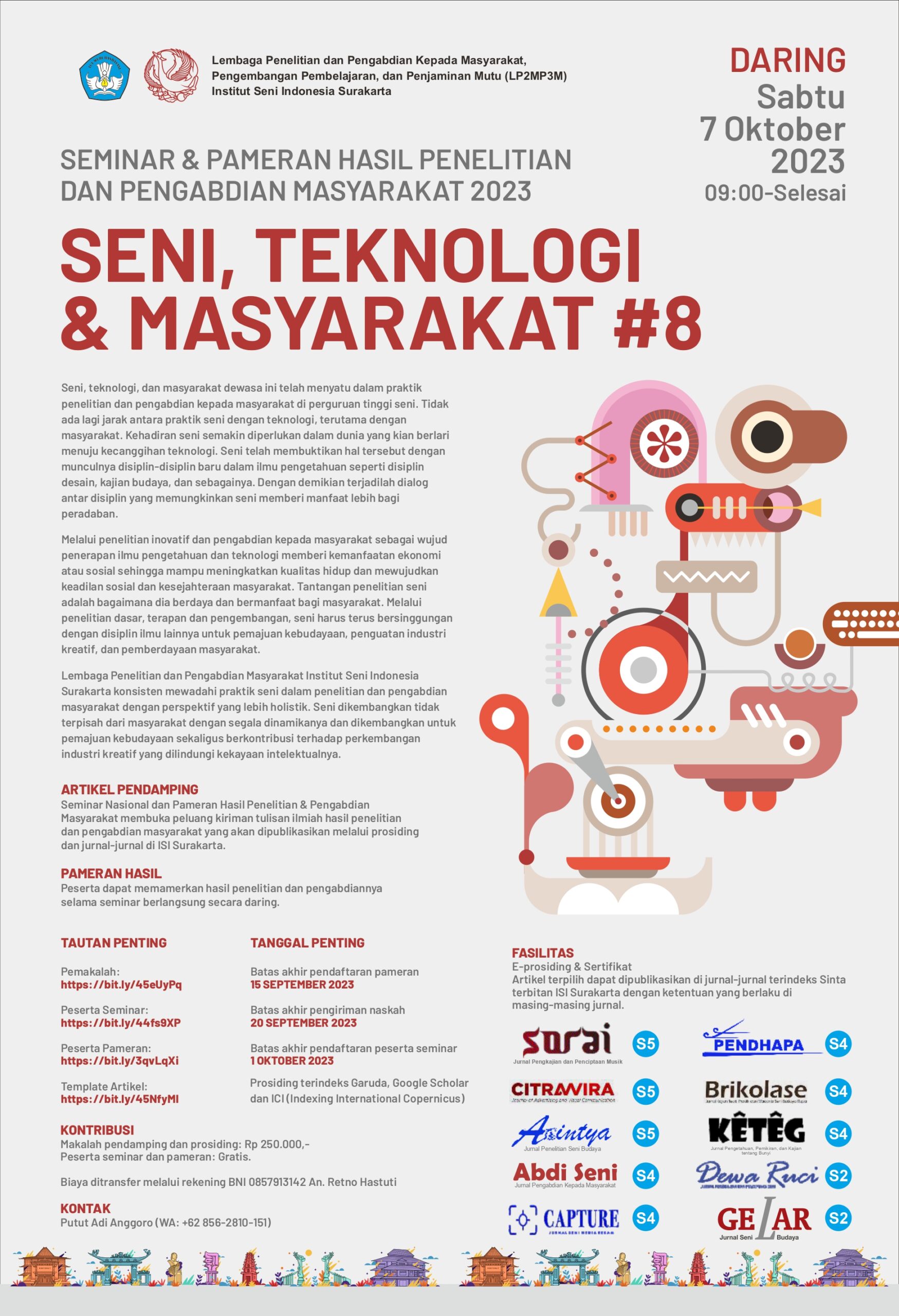 Seni, teknologi, dan masyarakat dewasa ini telah menyatu dalam praktik penelitian dan pengabdian kepada masyarakat di perguruan tinggi seni. Tidak ada lagi jarak antara praktik seni dengan teknologi, terutama dengan masyarakat. Kehadiran seni semakin diperlukan dalam dunia yang kian berlari menuju kecanggihan teknologi. Seni telah membuktikan hal tersebut dengan munculnya disiplin-disiplin baru dalam ilmu pengetahuan seperti disiplin desain, kajian budaya, dan sebagainya. Dengan demikian terjadilah dialog antar disiplin yang memungkinkan seni memberi manfaat lebih bagi peradaban.